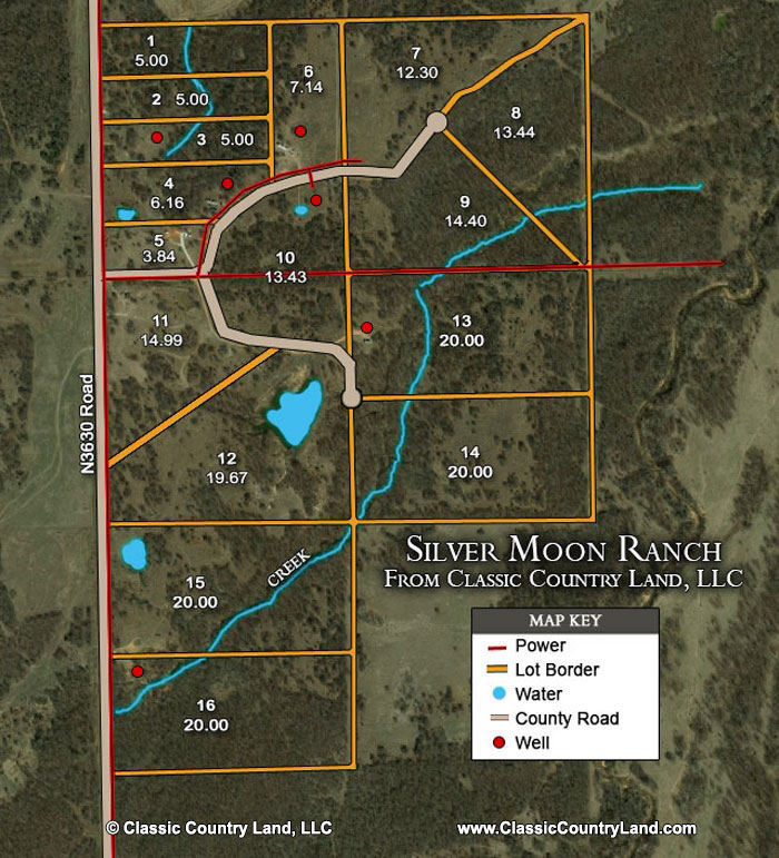Silver Moon Ranch is a incredible property featuring both desirable elevation and beauty within an easy driving distance from either Oklahoma City or Tulsa. A terrific fishing pond on the western portion of the property is surrounded by sandstone flats that descend into the clear water. The hills fall toward several wet weather creeks that are shrouded by timber. Native grass openings dotted with sumac fill in the gaps between stands of timber. The west side of the property has county road frontage, and the other three sides are surrounded by neighboring properties.
